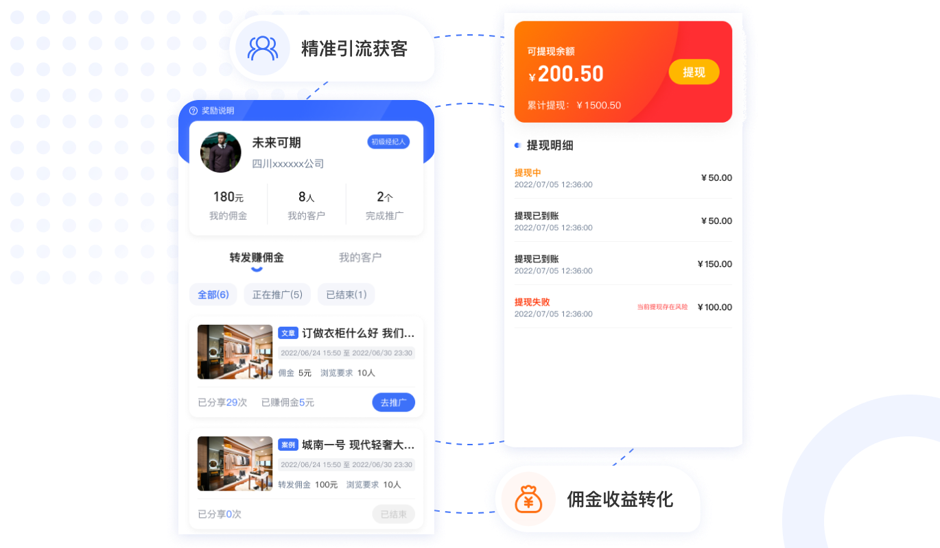 用戶激活收益,團(tuán)隊(duì)推薦獎(jiǎng),團(tuán)隊(duì)極差收益,快速裂變用戶